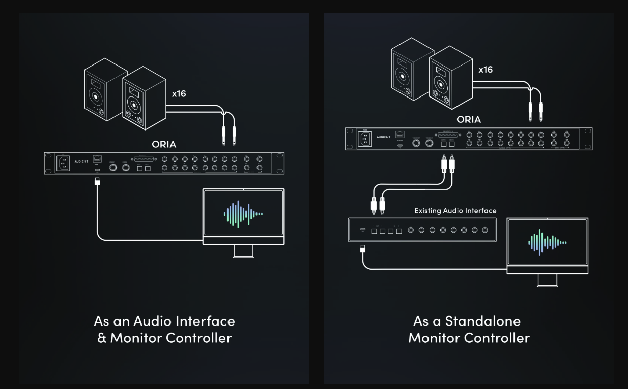 L’ORIA Mini se positionne entre ces différentes catégories : il reprend le principe du boîtier dédié comme ARC Studio, tout en bénéficiant de l’algorithme de Sonarworks SoundID Reference et d’une conversion audio de niveau professionnel, domaine dans lequel Audient est déjà implanté avec ses interfaces.