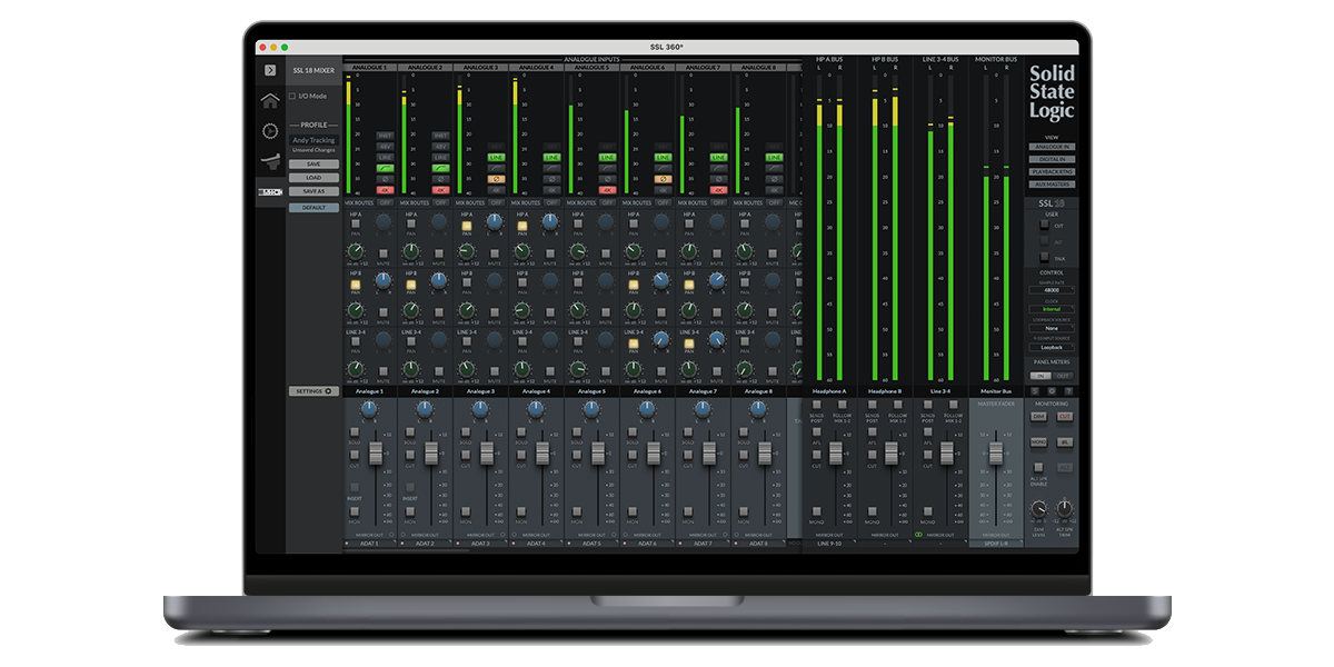 SSL 360° permet également de sauvegarder et rappeler des profils de routing complets pour différents scénarios (prise batterie, enregistrement voix, mixage stéréo ou post-production), ce qui facilite l’utilisation de la SSL 18 comme cœur permanent du studio.