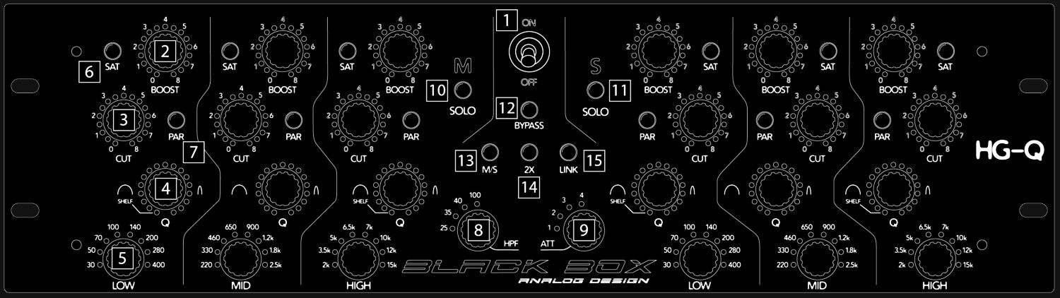 Le Black Box HG-Q associe une égalisation à six bandes et une saturation analogique à lampes dans un châssis rack 3U. Les caractéristiques mises en avant par le constructeur et les fiches produits sont les suivantes :