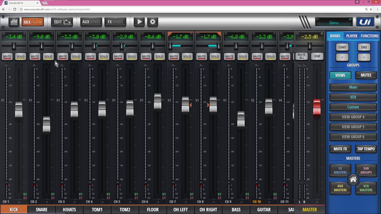 Toutes les fonctions de mixage se contrôlent via navigateur web HTML5, ce qui signifie qu’aucune application native n’est nécessaire. Des tablettes, smartphones ou ordinateurs peuvent se connecter et piloter l’Ui24R en même temps, avec jusqu’à 10 appareils simultanés.