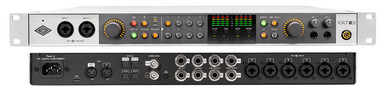 Le nom de Volt 876 n’est pas anodin : le chiffre 8 renvoie aux huit canaux d’entrée analogiques, chacun bénéficiant d’un préampli « vintage » et d’un compresseur calqué sur des références historiques de Universal Audio.